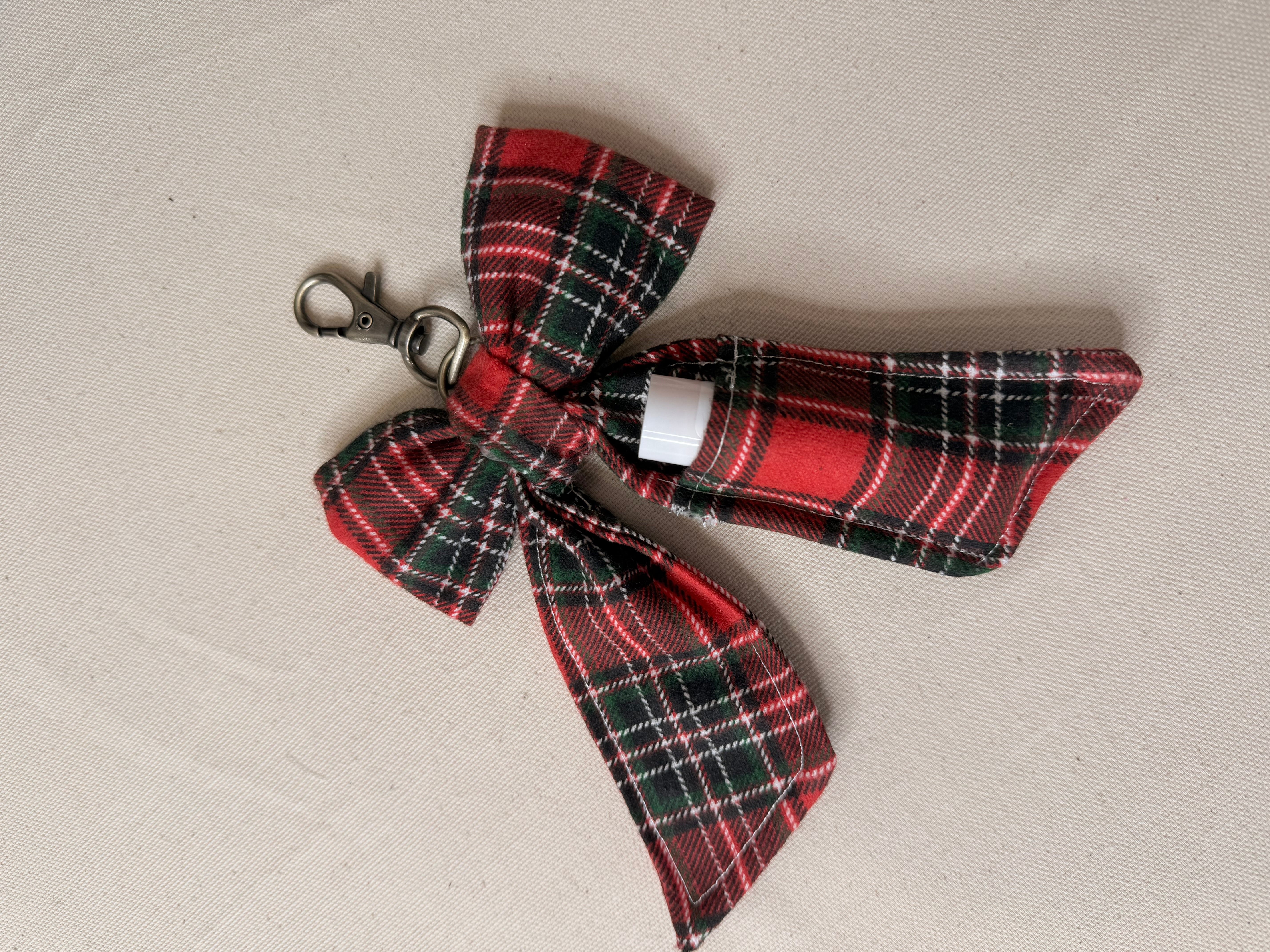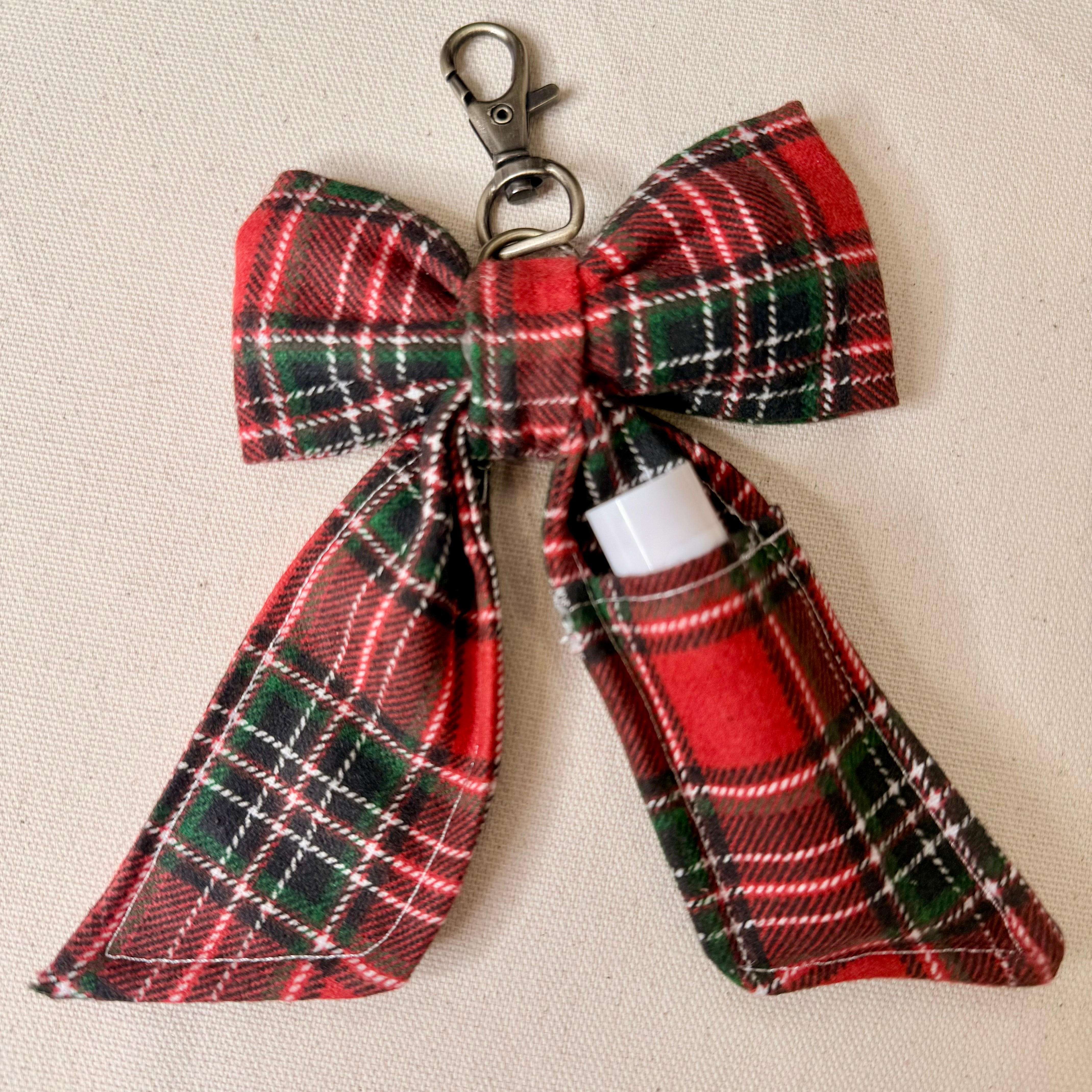 Diaper bag accessories are a must! Safely and stylishly keep your chapstick on hand with our Plaid Chap-Stick Holder Keychain. Handmade with a charming plaid bow, this keychain conveniently attaches to your keys or bag. Perfect gifting item for your gal pals!