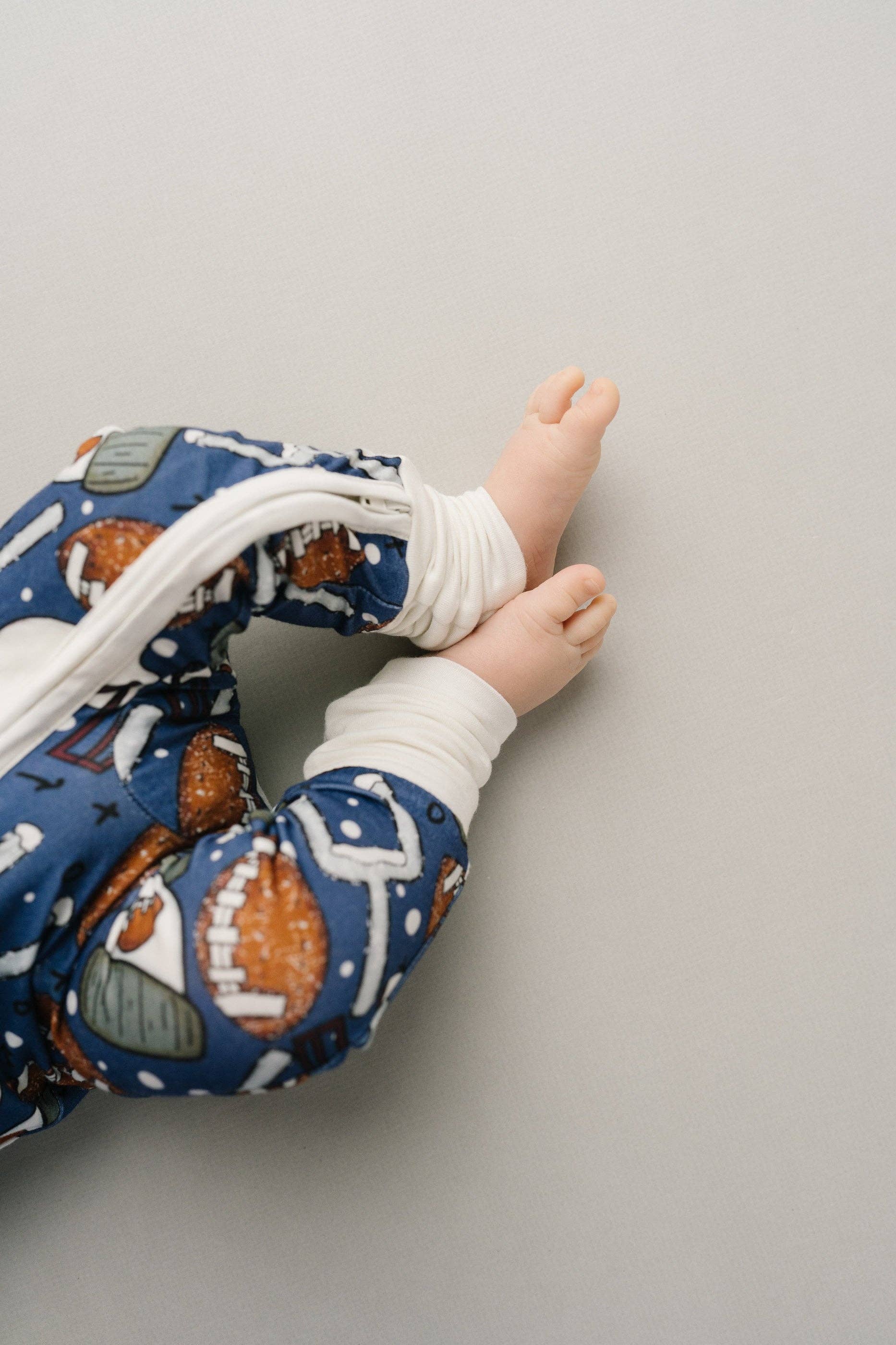 Buttery soft, lightweight, breathable, and stretchy Fold over mittens up to 12-18M Fold over footies Features a 2-way zipper for easier changes Designed with a snug fit for safety Fabric: 95% viscose bamboo, 5% spandex No flame retardants or chemicals Machine wash, tumble dry
